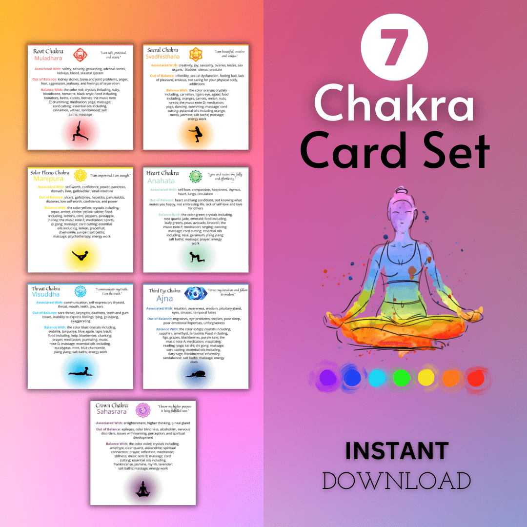 This printable chakra card set is an essential guide for any reiki or energy-healing teacher, practitioner, or practitioner.