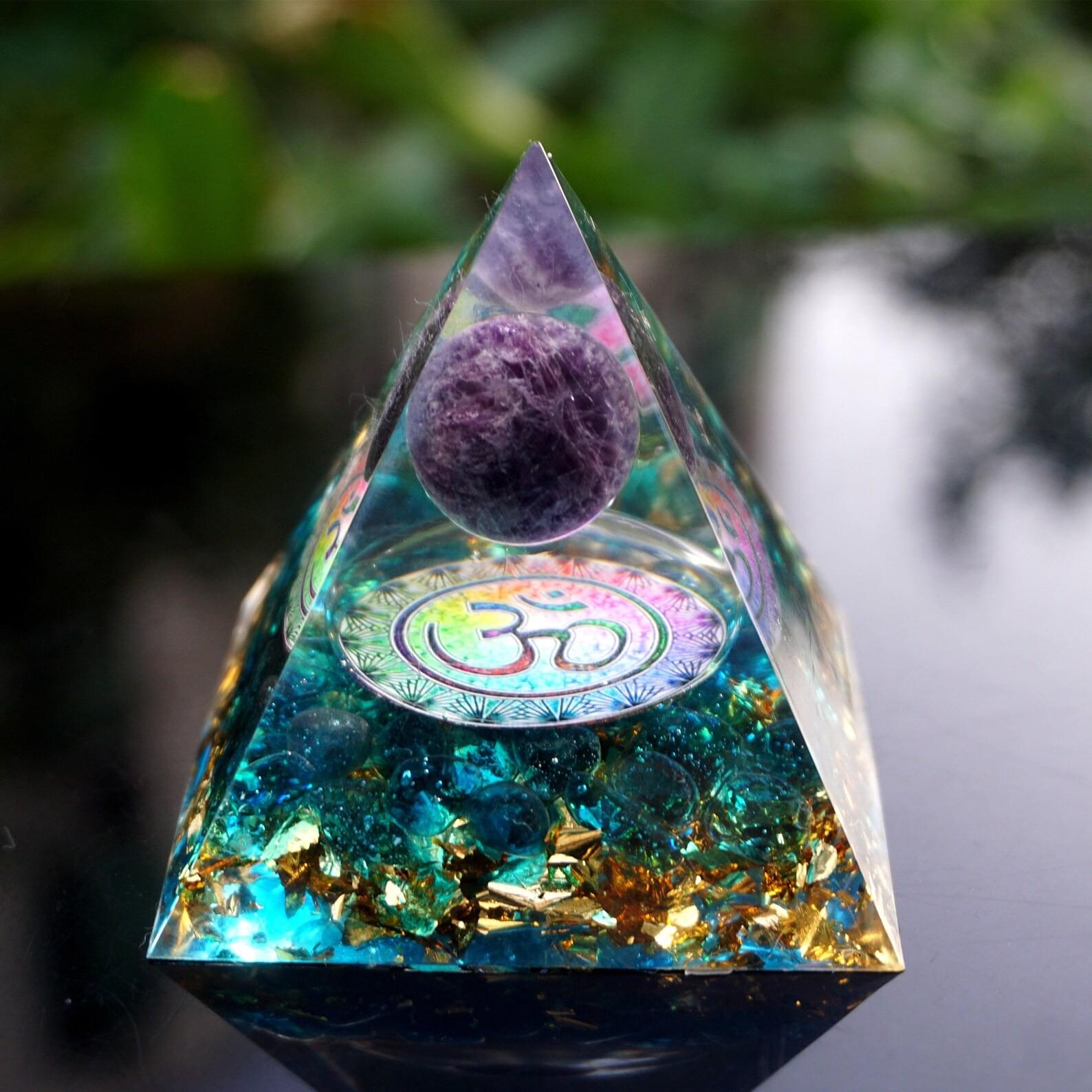 Orgonite is a special pyramidal form that absorbs harmful energy waves around it, converts them directly into positive energy waves, and radiates them out (This process never stops). This crystal pyramid could enrich your spiritual energy and take out the negative emotions in your life and surround you with peace, tranquility, and positivity.