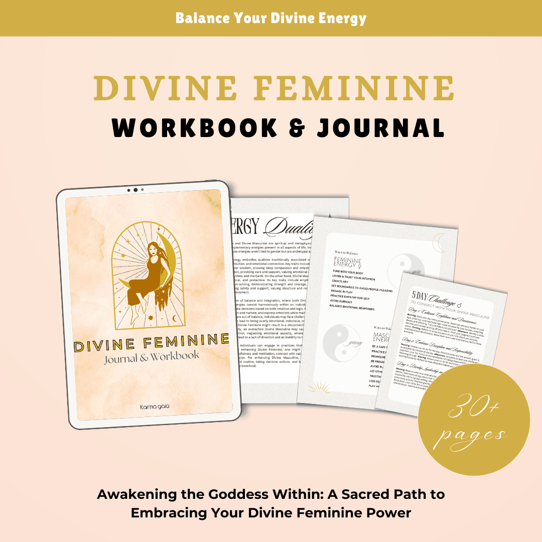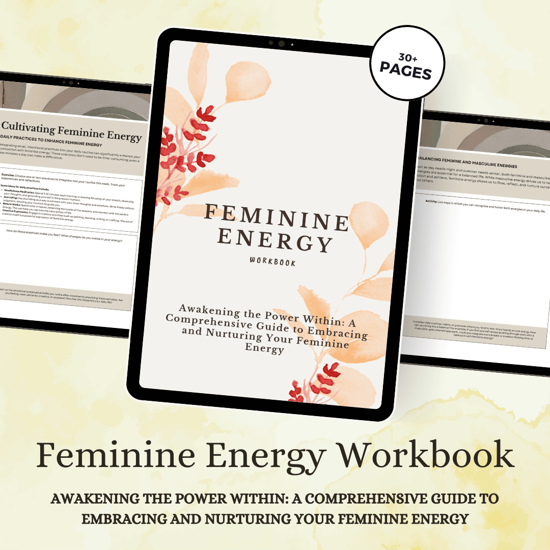 Surrender to the transformative journey of self-discovery with our Feminine Energy Workbook - your sacred companion for awakening the goddess within. This meticulously crafted 30-page guide gently leads you back to your authentic feminine essence, where intuition flows freely and your natural radiance captivates everyone around you. Through a treasure trove of soul-nourishing practices, you'll learn to release the exhausting masculine patterns that drain your vitality and reclaim the magnetic feminine power that makes life feel effortless and abundant.