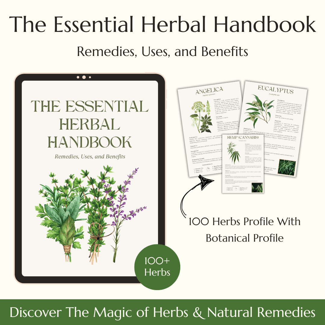 Discover nature's pharmacy at your fingertips with our comprehensive Herbal Handbook—an indispensable guide for modern herbalists, wellness enthusiasts, and those seeking natural remedies. This meticulously crafted digital resource transforms ancient wisdom into accessible knowledge, featuring detailed profiles of 100 essential herbs with everything from medicinal properties and preparation methods to magical associations and elemental correspondences. Whether you're crafting remedies in your kitchen, aligning your wellness practice with cosmic energies, or simply curious about the hidden properties of plants growing in your garden, this digital handbook serves as your trusted companion on the path to natural healing and holistic well-being.