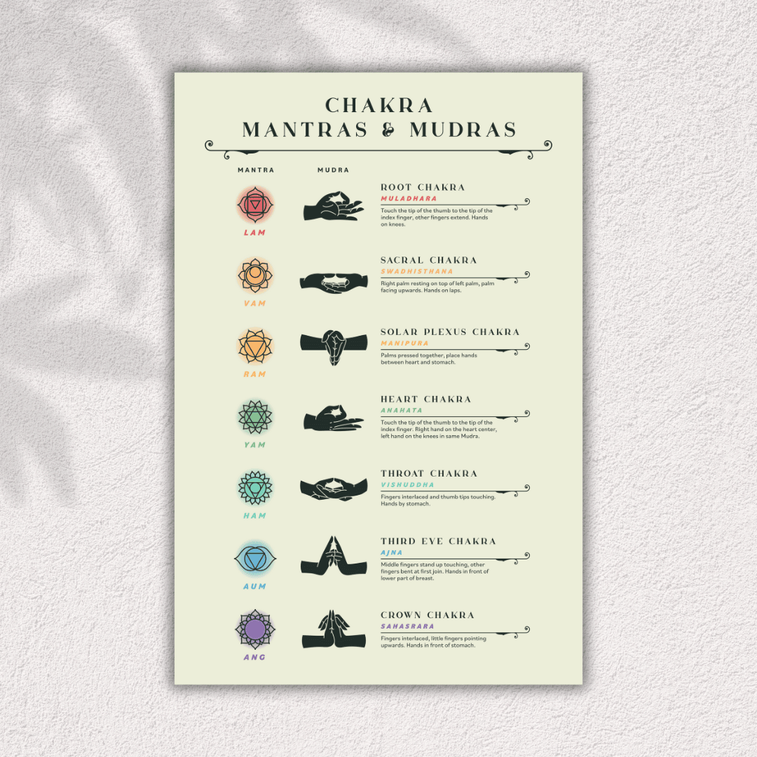 Balance your being with  this printable Chakra Mantras & Mudras Wall Art! Harmonize your energy and add a touch of mindfulness to your surroundings. Transform your home, transform your well-being.