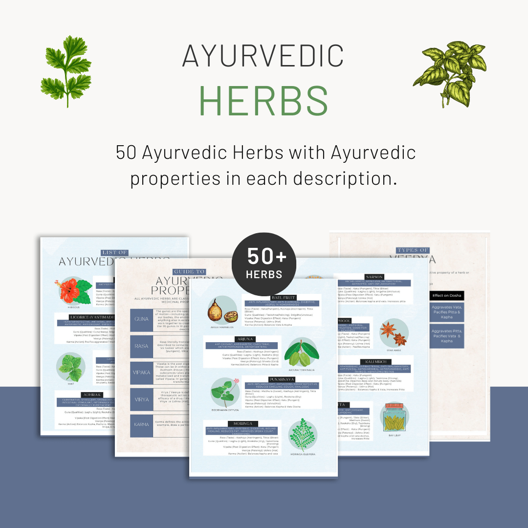 This is a set of 18 Ayurvedic Herbs & Properties Guide Cheat Sheets. It contains 55 Ayurvedic Herbs with Ayurvedic properties of each.