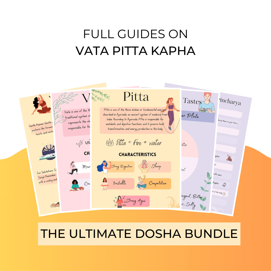 This is a set of 10 dosha balancing guides. It consists of everything related to each dosha like: