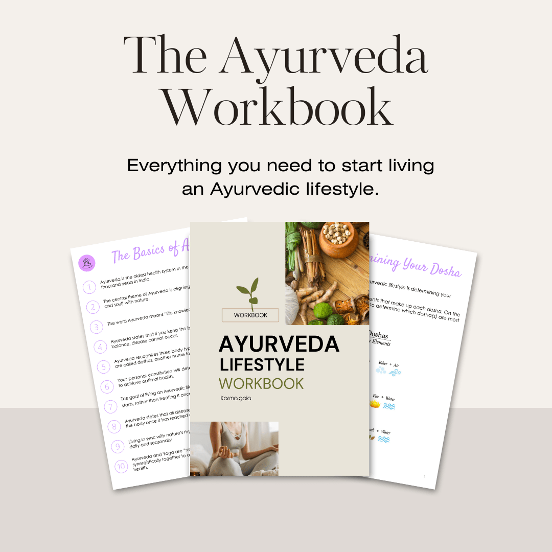 This Ayurveda workbook gives you 30 pages of everything you need to start living an Ayurvedic lifestyle.