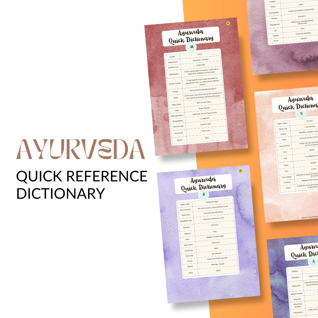 This is a list of 500+, 45 Pages Ayurveda Sanskrit to English Quick Reference Dictionary.
