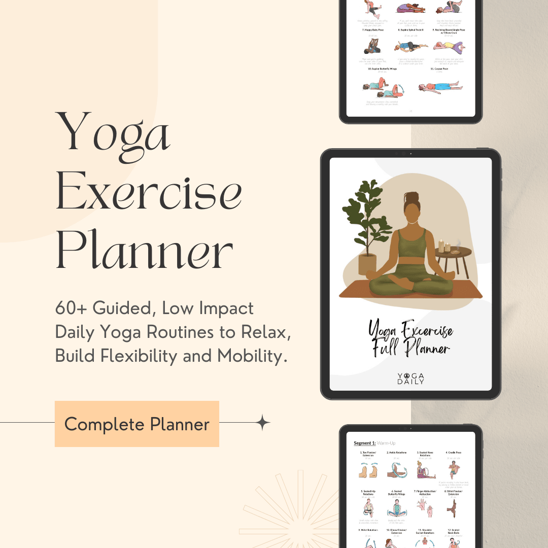 Without movement, our bodies get stiff & don't function as they should. Without exercise, we can't possibly optimize our energy levels or the way we feel. Workouts in this Yoga Exercise Planner will have you feeling limber and healthy, inside and outside of your body. Yoga for for all levels with 66 completely guided yoga routines.