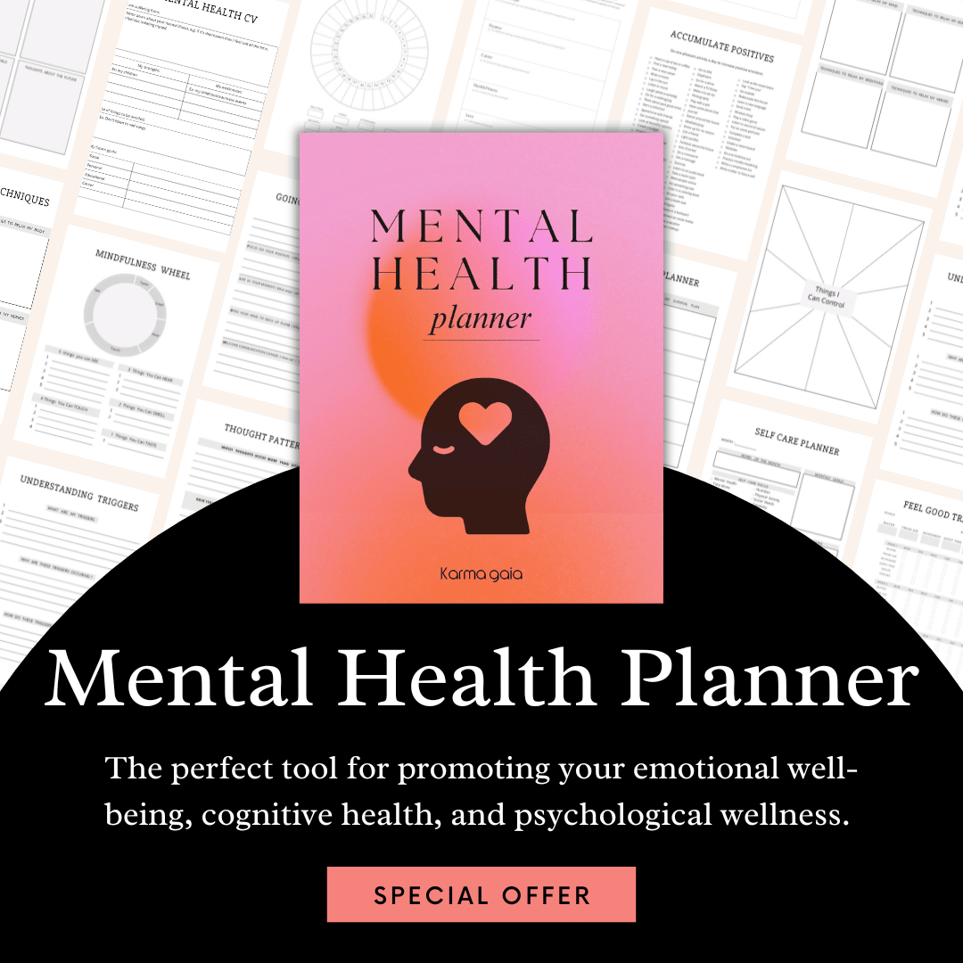 This Mental Health Journal is created to help people suffering from anxiety, mood swings, or other mental health issues. In this bullet journal, you will find writing prompts, exercises, and trackers, so you can record your progress and discover your thoughts in a more profound way.