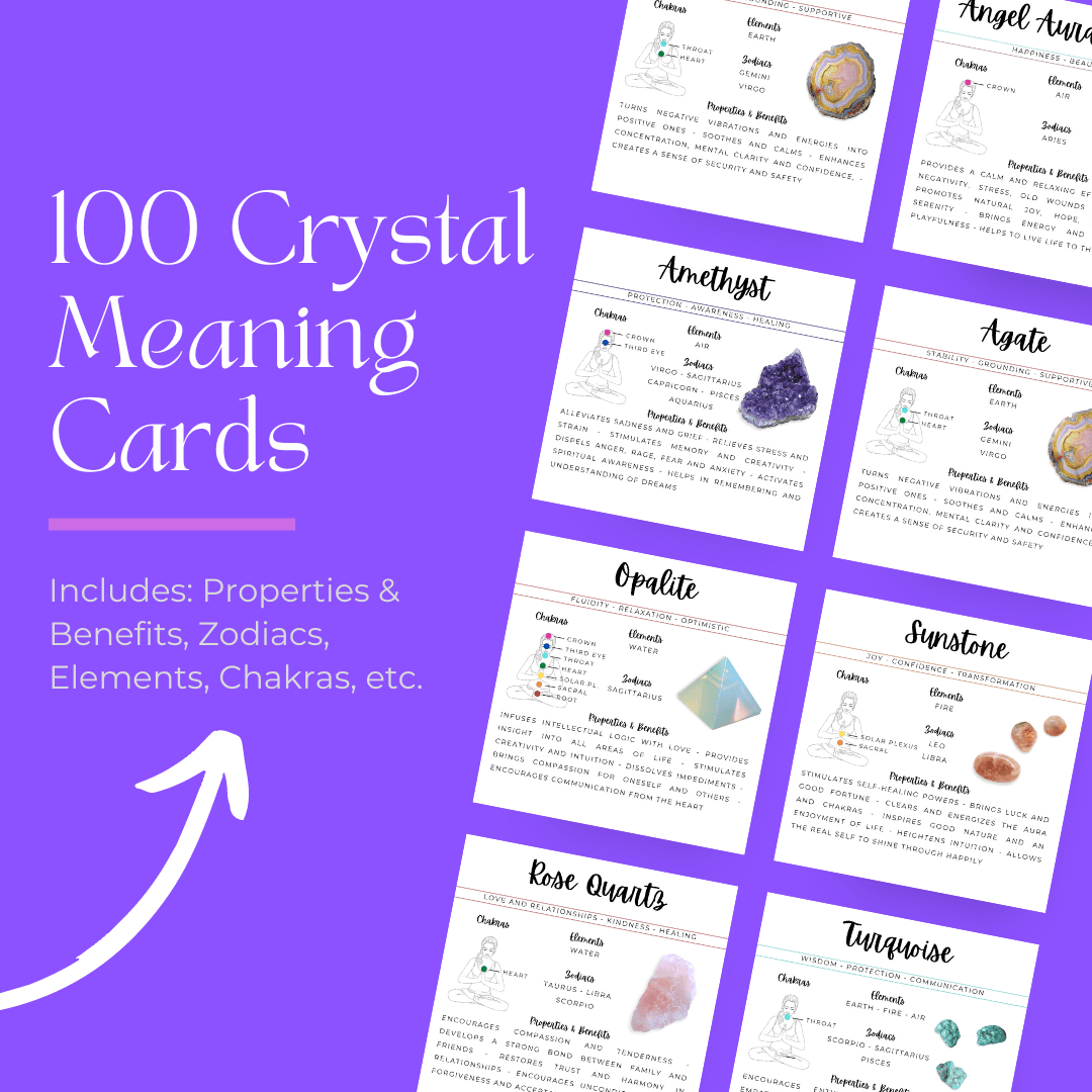 These gemstone meaning cards are a wonderful crystal guide to help you understand the gemstones, chakra crystals properties, zodiac correlation, and elements; so that you can learn about all the different crystal benefits and what they can do for you.