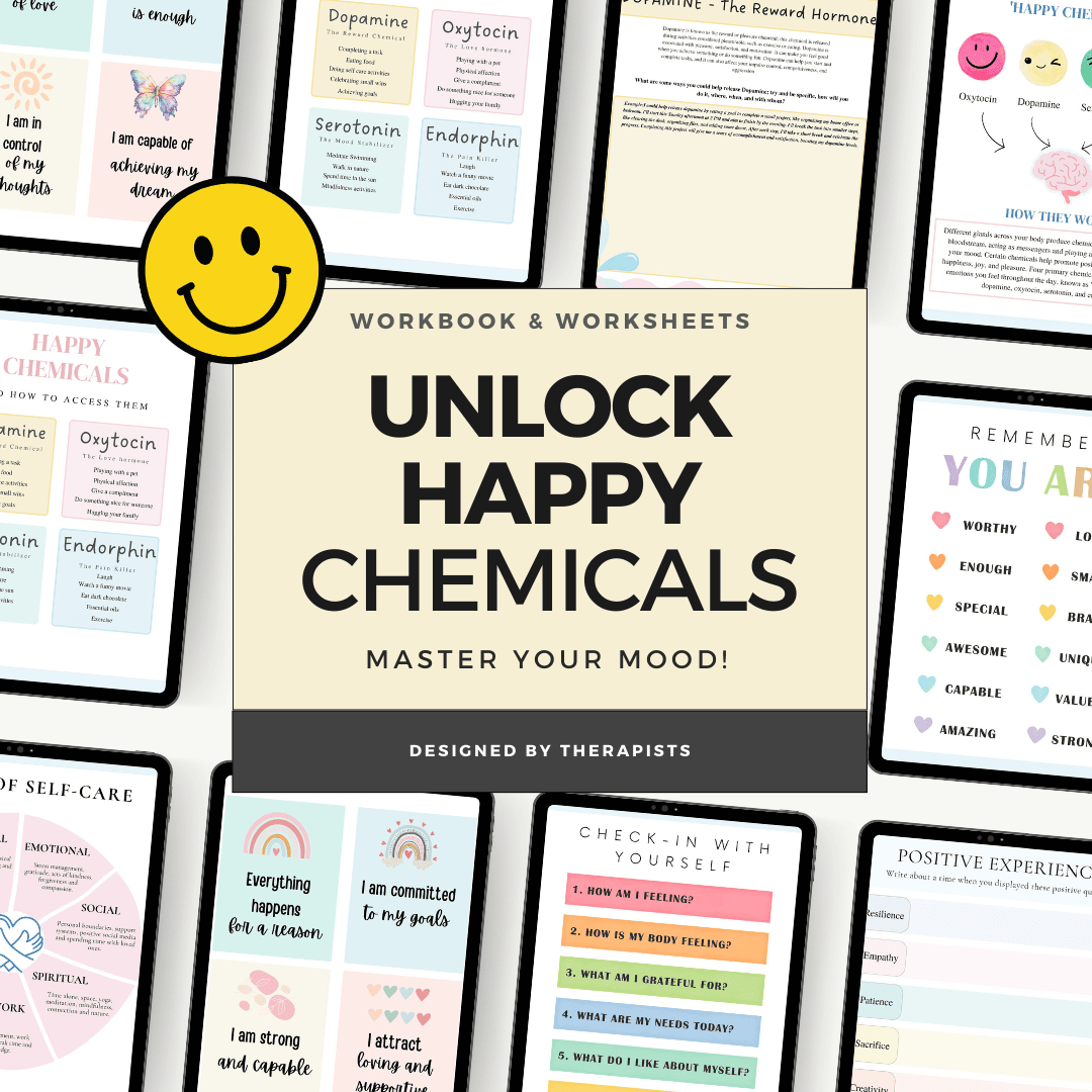 Transform your well-being from the inside out with our Happy Chemical Worksheet Bundle! This comprehensive collection of printable, easy-to-use worksheets guides you through understanding and nurturing your body’s natural “feel-good” hormones—dopamine, serotonin, oxytocin, and endorphins. Each engaging page helps you identify patterns, set healthy habits, and track personal progress toward a more balanced, uplifting mindset. Designed for anyone looking to boost mood, increase resilience, and cultivate genuine joy, this bundle blends proven psychological insights with practical exercises for everyday life. Start taking charge of your happiness today and experience the blissful difference that comes from activating your inner chemistry of joy!