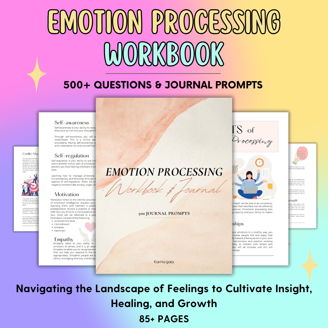 Discover the transformative power of understanding your emotions with our comprehensive Digital Emotion Processing Workbook. Filled with 500+ carefully crafted questions and guided journal prompts, this immersive resource empowers you to delve deep, uncover hidden patterns, and break through emotional barriers. Whether you’re navigating stress, seeking self-acceptance, or wanting to strengthen your relationships, our workbook offers a safe, structured environment for personal growth. Designed for both beginners and seasoned introspective thinkers, it allows you to move at your own pace, cultivate a clearer sense of self, and ultimately create a more balanced, emotionally resilient life. Take the first step toward meaningful change—unlock the workbook today.