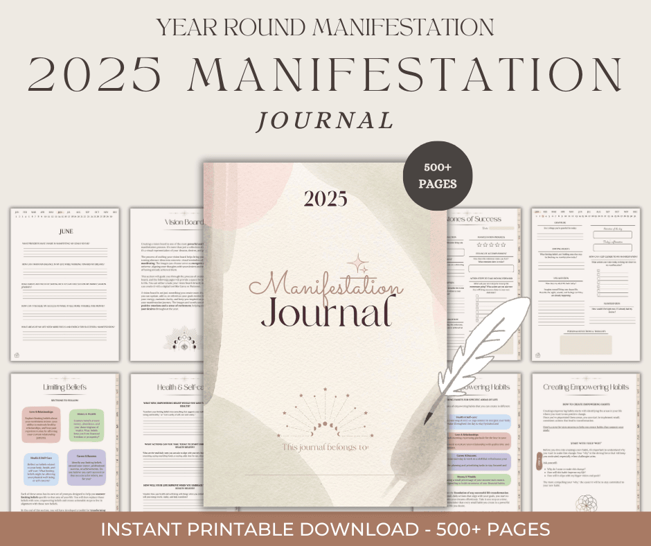Why settle for anything less than what you truly want? The 2025 Manifestation Journal brings together time-tested mindset practices and inspiring prompts to keep you focused, motivated, and unwavering in your pursuit of the life you deserve. Claim your future now—start manifesting the abundance, success, and fulfillment you've always envisioned!